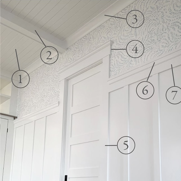 How to mix different wainscoting styles throughout the space: