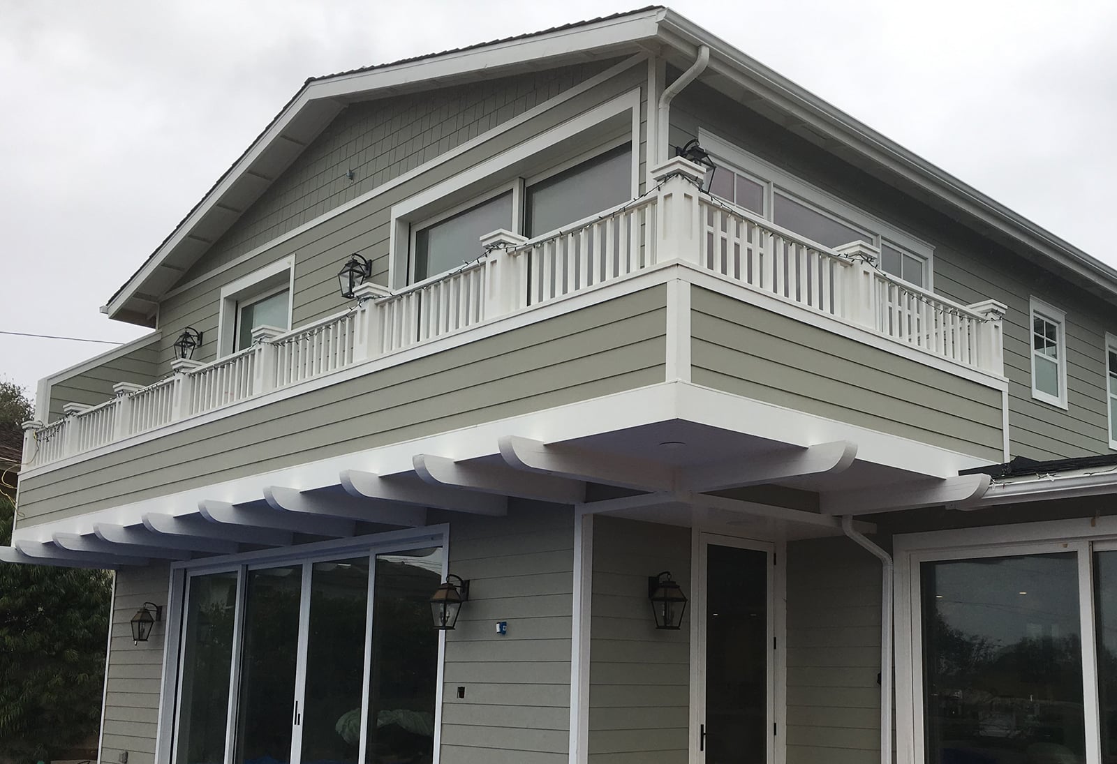 Corner boards, bold band boards wrapped columns, full trim treatment on this balcony porch featuring WindsorONE Exterior Trim Boards.